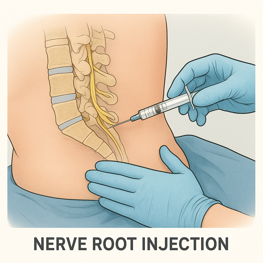 A Nerve Root Injection is a procedure used to diagnose and treat pain caused by irritation or
